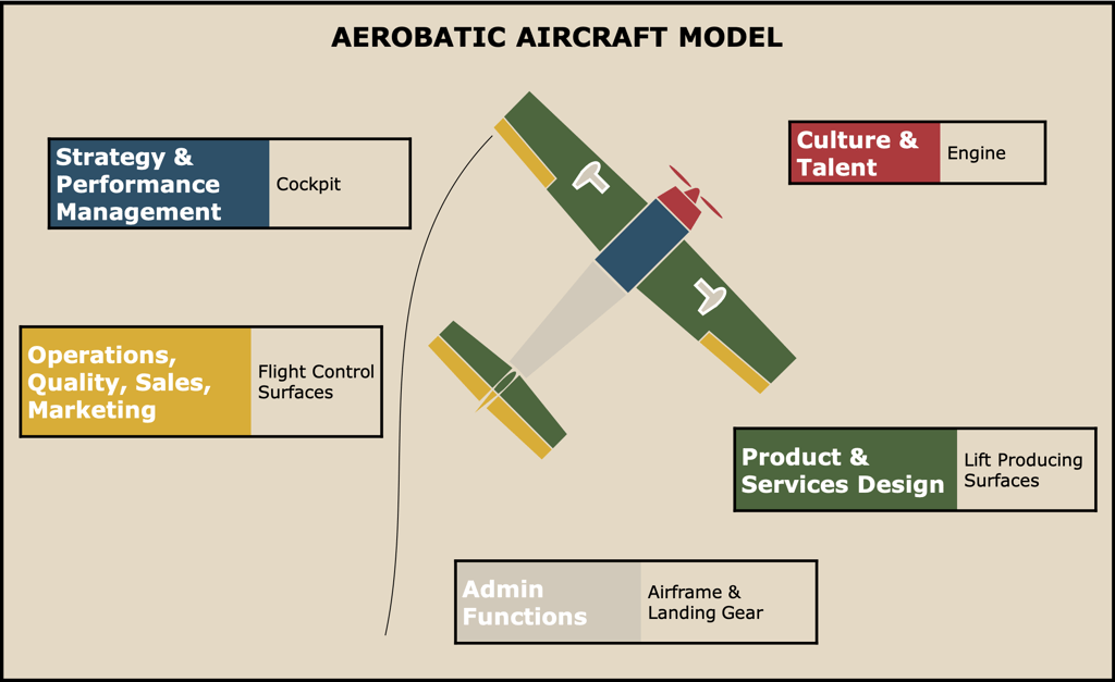 When I lived in Australia I learned how to fly aerobatics in an Alpha 160a. That sparked the idea that businesses need to be built like an aerobatic aircraft - delighting customers with speed, strength and agility.